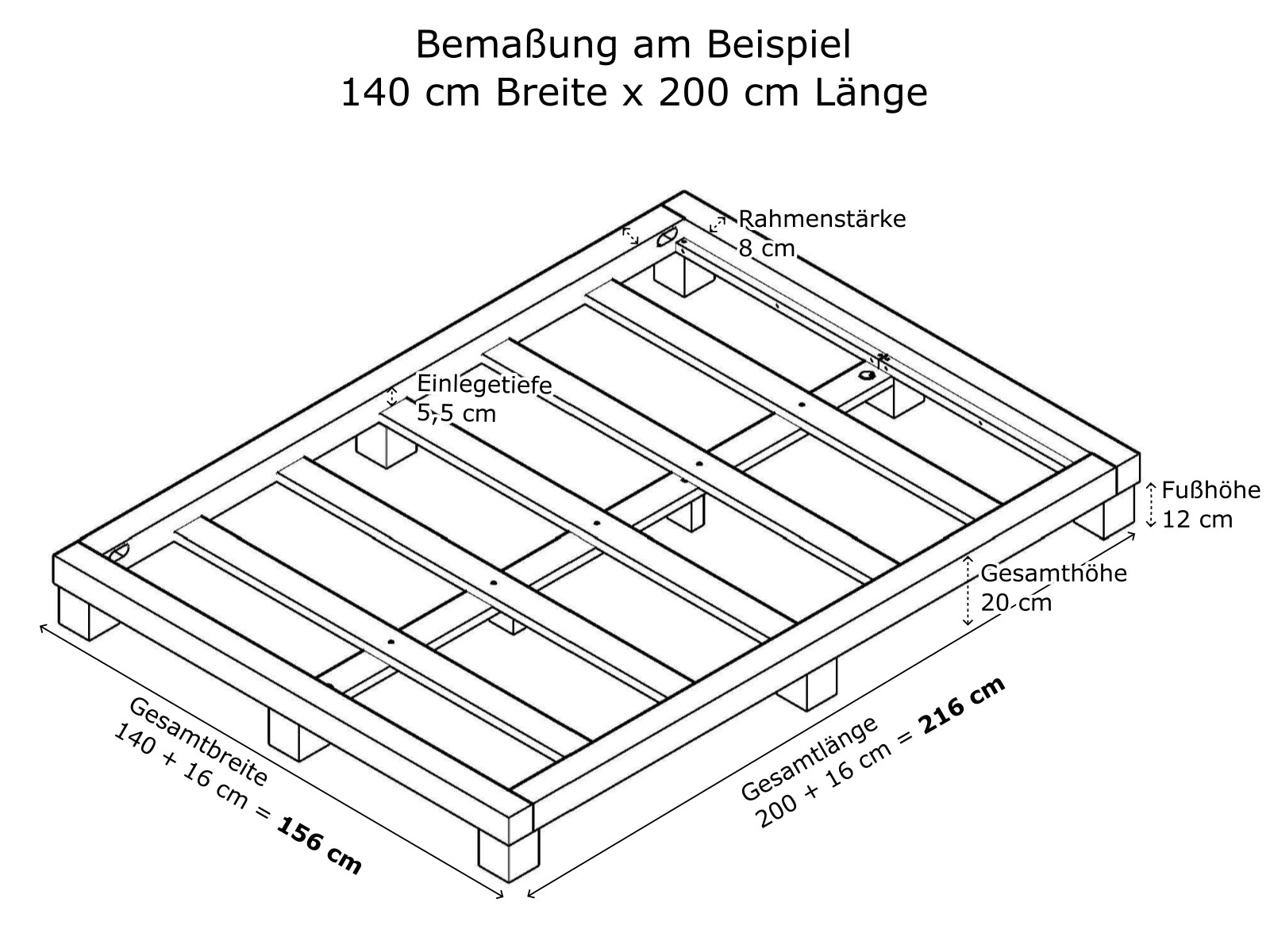 Wenn Sie Rahmenroste 4cm statt Tatamis nutzen möchten, liegt Futon / Matratze ca. 1,5cm tiefer.